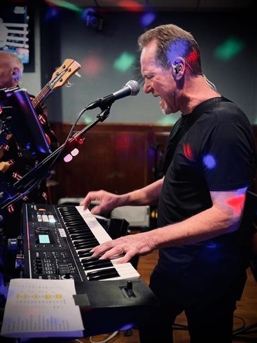 Rick does it all! Rhythm guitar, lead guitar, acoustic guitar, keys, vocals, and stage audio with sound engineer Thom Roy.